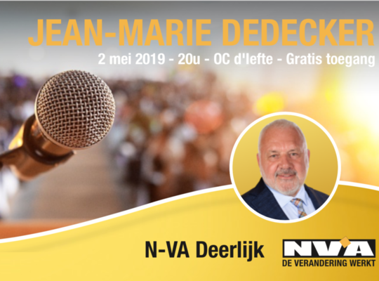 Op donderdag 2 mei 2019 om 20u nodigt N-VA Deerlijk Jean-Marie Dedecker uit. Hij antwoordt er op al je vragen en neemt geen blad voor de mond. Wij hopen jullie te mogen verwelkomen!