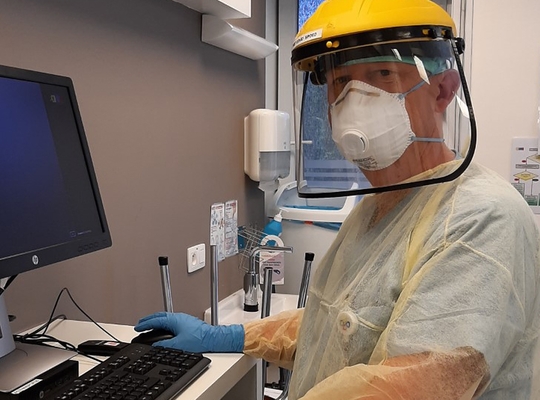 Het ziekenhuis kent door de komst van het Covid-19-virus heel wat tijdelijke reorganisaties. We krijgen dagelijks mails met de nodige instructies. De spoedafdeling is ingericht in twee gedeelten: een Covidzone en een niet-Covidzone. Ook de dienst intensieve zorgen wordt gesplitst